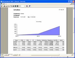 Die Auswertung Umsätze steht Ihnen jederzeit auf