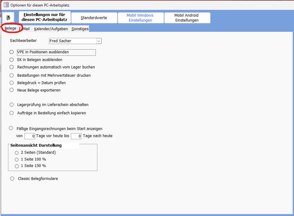 Arbeitsplatz-Einstellungen