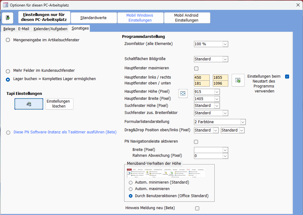 Tapi Einstellungen