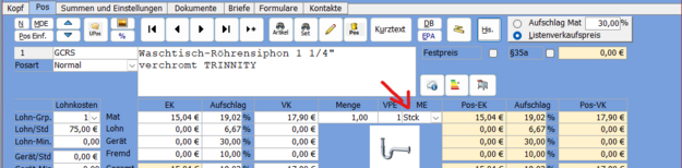 Führen Sie einfach einen Doppelklick auf dem Feld für die Mengeneinheit aus.