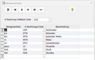 Dieser Code wird in E-Rechnungen verwendet, wenn das Feld Mengeneinheit in der Position leer ist oder einen Wert ohne E-Rechnungs-Code enthält.