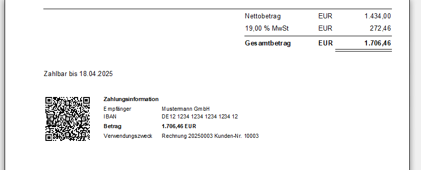 Drucken Sie im Rechnungsbeleg einen QR-Code mit allen Zahlungsinformationen aus und machen Sie somit die Bezahlung von Rechnungen für ihre Kunden so einfach wie möglich.