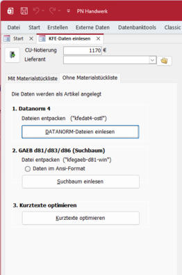 Als erstes werden die Datanorm-Dateien eingelesen.