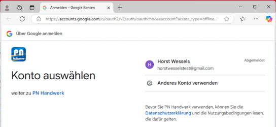 Hier tragen Sie die E-Mail-Adresse des entsprechenden Google-Kontos ein.